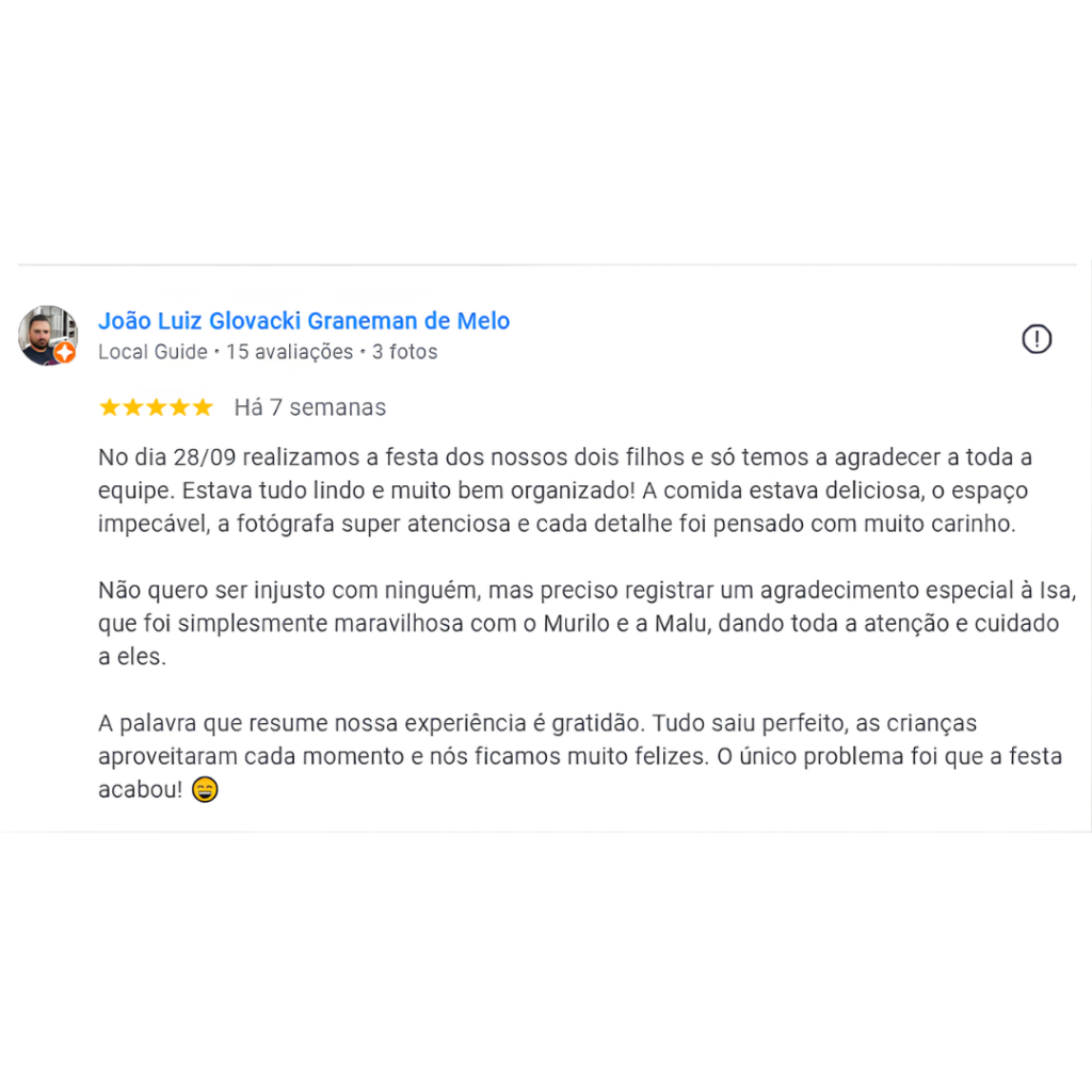 3. Clientes que comprovam a eficácia do nosso Buffet Infantil.